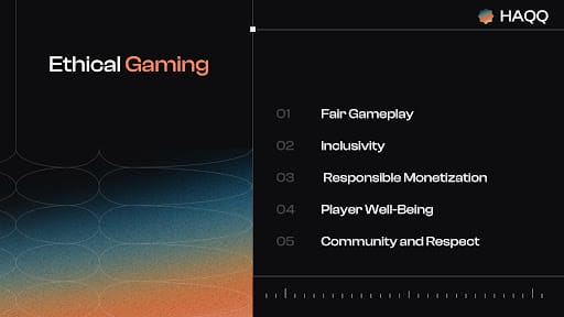 Through the use of the HAQQ ecosystem, developers can be sure they are offering experiences that align with the concepts of ethical gaming: