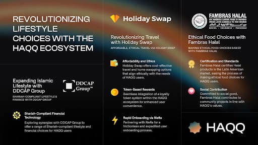 HAQQ is not just a platform; it’s a multi-faceted ecosystem aimed at creating a more inclusive and sustainable world. With key partnerships like Thea Carbon for environmental sustainability, Nefta for streamlined blockchain integration, and Holiday Swap for global travel experiences, we are shaping an ecosystem that goes beyond mere cryptocurrency transactions.