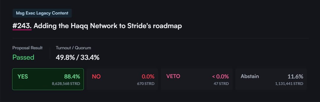 Our successful proposal with Stride Zone will also significantly impact the way ISLM holders can utilize their tokens. Previously, ISLM holders could only engage in network staking, liquidity provisioning or trading on vesting.haqq.network without access to broader DeFi opportunities. With liquid staking coming to HAQQ Network, users will be able to stake their ISLM tokens and receive stISLM, which can be used across various DeFi platforms. Once our integration with Strize Zone is complete, ISLM users will no longer need to unstake their LP position and trade their ISLM for other tokens to access attractive DeFi opportunities. Instead, they can simply use stISLM to gain exposure to these opportunities.This integration not only increases the liquidity of ISLM but also opens up new financial opportunities for our community.