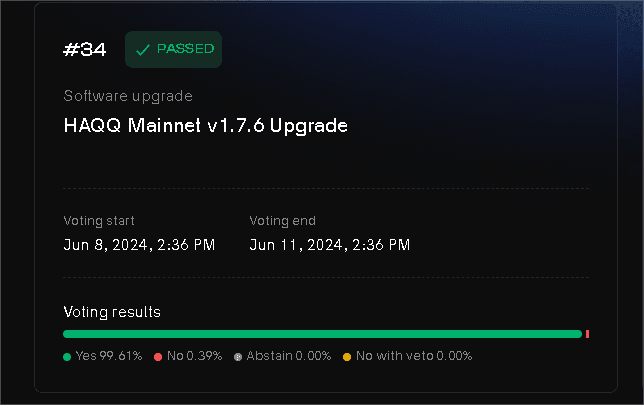 The evolution of the ISLM tokenomics reflects our commitment to building a sustainable, ethical, and robust financial ecosystem. Each proposal contributes to a more stable, transparent, and utility-rich environment, aligning with our mission to integrate Islamic principles with cutting-edge blockchain technology. As we move forward, HAQQ is focused on offering our community even greater value and opportunities, ensuring that ISLM remains at the forefront of ethical blockchain innovation.